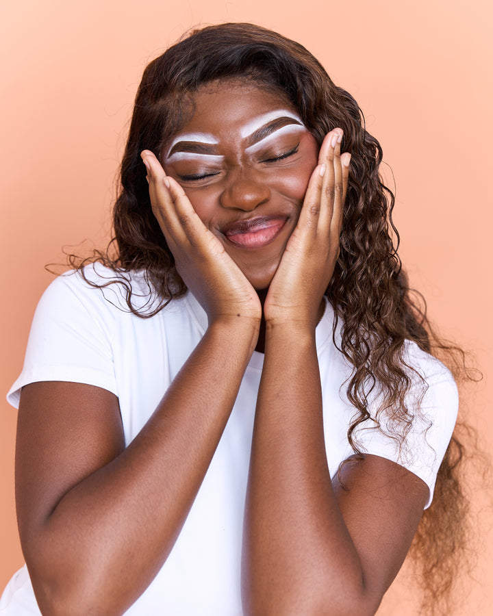 The easiest way to get symmetrical brows during an eyebrow service is using the Bella Beauty Brow Sticker Ruler. Simply apply the sticker to the centre of the face on the forehead and map the eyebrows using the guidelines.